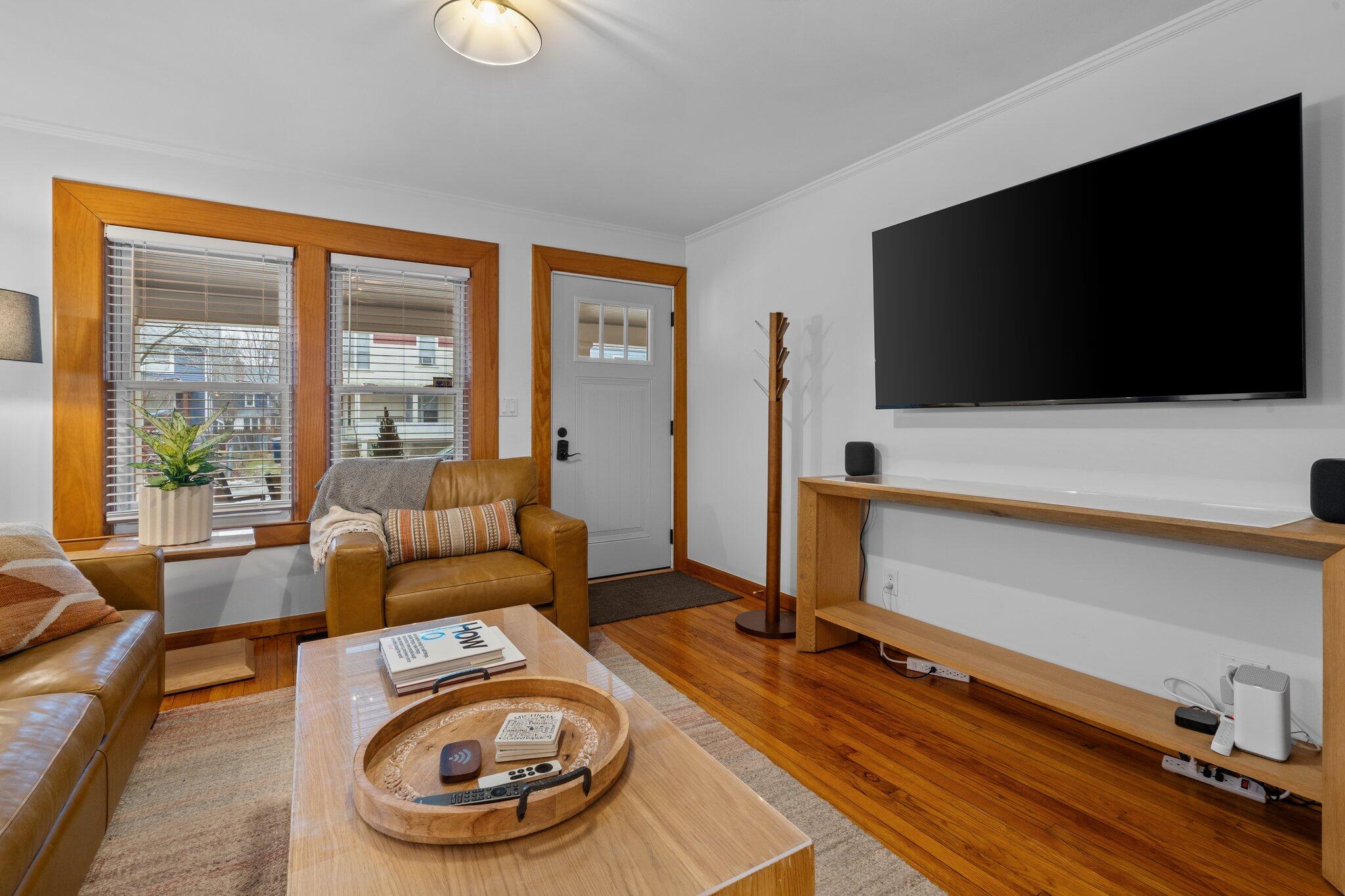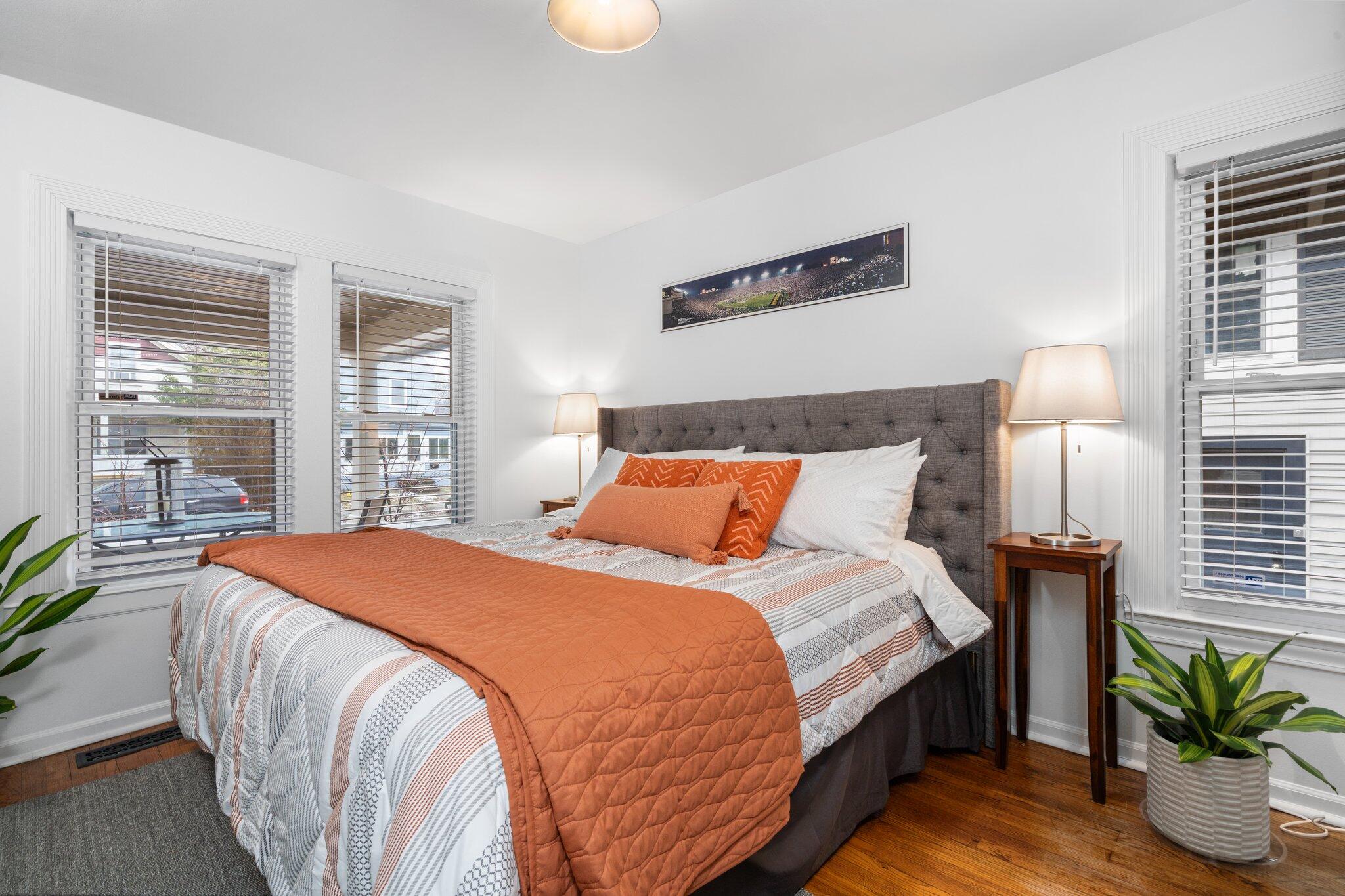Steps from the Big House and the UM Athletic campus, this sunny Burns Park bungalow has been completely renovated with all its vintage charm intact. It features beautiful hardwood floors and trim. An efficient kitchen has stainless appliances, a coffee bar and ample storage. It is convenient to the large back deck and screened porch for effortless entertaining. Perfect for any fan of the Wolverines! Two bedrooms flank the bathroom. It has a vanity with quartz counter and a large walk-in shower with a high rain shower head and invigorating jets. Downstairs is a large office space, loads of storage and laundry room. A rare 2 car garage has an EV charger and walk-up storage. Professional landscaping highlights the fenced backyard and gracious magnolia tree. Enjoy morning coffee on your wide-front porch, watching the bustling neighborhood activity. You are just around the corner from Argus Farm Stop and Cafe, a favorite of this sought-after neighborhood. This amazing location is an easy walk to Central Campus and downtown activity and near bus routes to take you to the rest of Ann Arbor and the university. Home Energy Score of 5. Download report at stream.a2gov.org.
